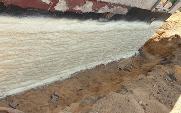Ocieplenie piwnicy pianą PUR, w celu izolowania straty ciepła od strony piwnic, metodą natryskową pianką poliuretanową.
